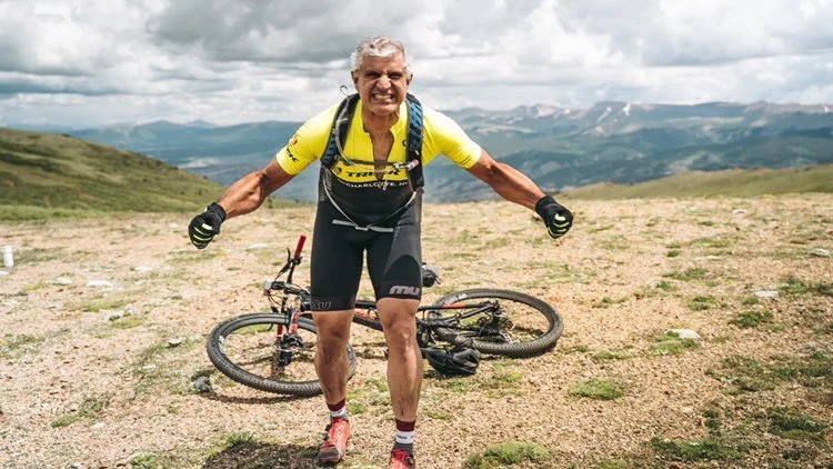 At the top of Columbine - 12, 400 feet during Leadville Trail 100 MTB bike camp in 2021.